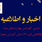 با افتخار اعلام میشود که دومین کنفرانس «مهارتهای سواد اطلاعاتی در قرن ۲۱» با محوریت ارتقاء توانمندیها و مهارتهای علم اطلاعات در حوزههای دانش، آموزش و محتوا، به همت انجمن کتابداری و اطلاعرسانی شاخه کرمان، دانشگاه فرهنگیان کرمان، دانشگاه شهید باهنر کرمان، دانشگاه علوم پزشکی کرمان و نهاد کتابخانههای عمومی استان کرمان، در فروردینماه ۱۴۰5 در دانشگاه فرهنگیان کرمان برگزار خواهد شد.